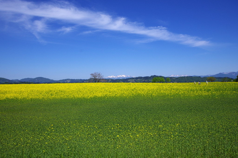 会津駒ヶ岳や守門岳が菜の花畑の向こうにそびえて綺麗でした。